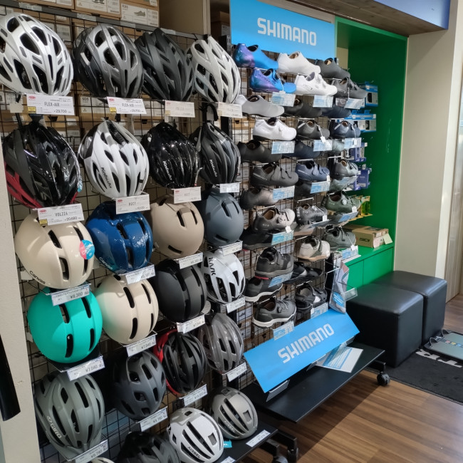 シューズ・ヘルメットは実際に履いたりかぶってサイズ感を確認した方が良いです。お気軽にお試し下さい。