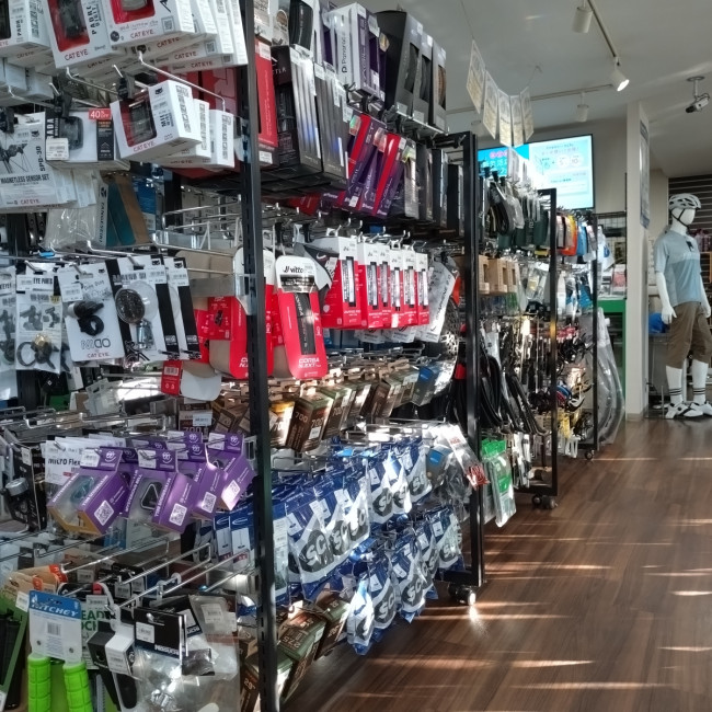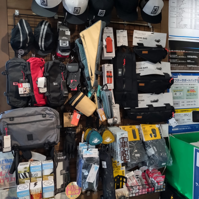 数こそ少ないですがいぶし銀のラインナップになってます。さらに店長イチオシのグラベルアクセサリーコーナーもございます。
