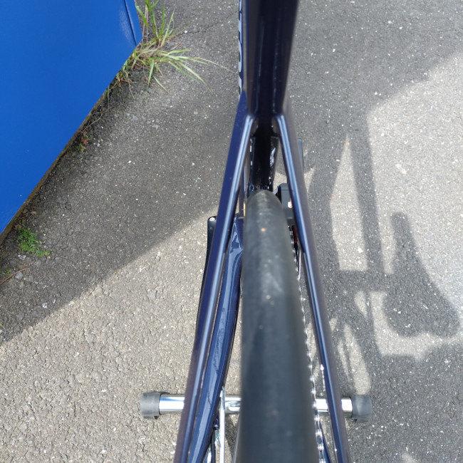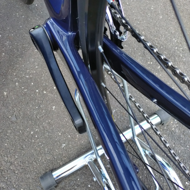 トラックバイクにルーツを持つ空力特性や左右非対称設計の太いチェーンステーにより駆動剛性を確保