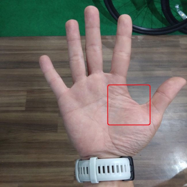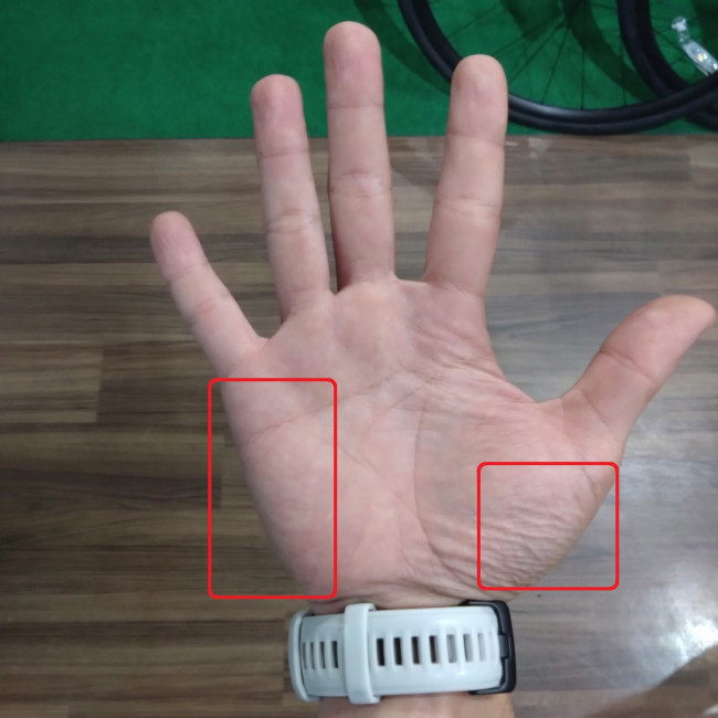 ロードバイクでは小指の側面と親指の付け根(手首)側に、