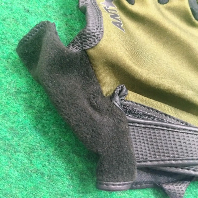 甲側はメッシュで蒸れず、親指側はパイル生地になっているので顔や顎の汗拭きも出来ます。