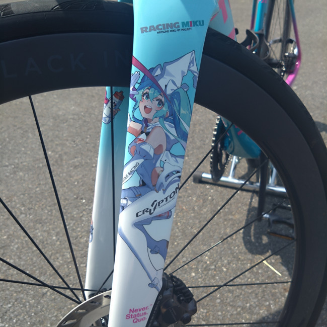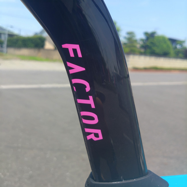 今年はフロントフォークの左右でデザインが変わっていたり、シートポストにファクターのロゴが入っています。