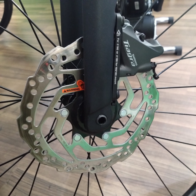 重量のあるe-bikeをしっかり止めるブレーキもSHIMANO TIAGRA