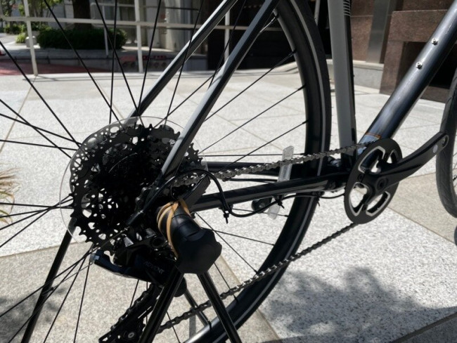 変速はフロントシングルでチェーントラブルが少なく、操作も簡単。ワイドなギアで急な登りにも対応可能。