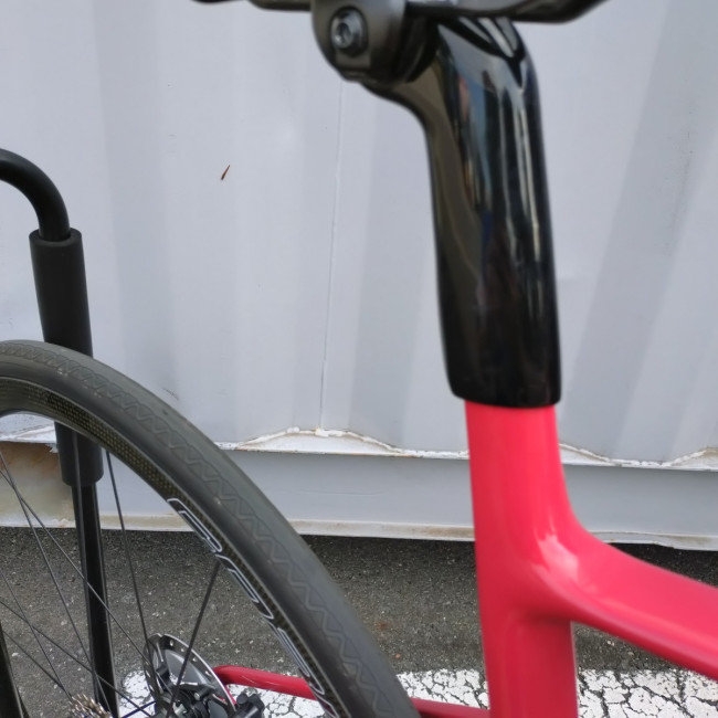 メーカーの車種紹介に『OSTROにも負けない剛性』とあったので乗り味は硬いのかと思いましたが、乗ってみるとそんなこともなく語彙力が無くて申し訳無いですが『上品な乗り味』という感じです。路面状況をよく分かっているルートを走ったので、いつもなら振動が気になる場所もフレーム全体でいなすような感覚があります。