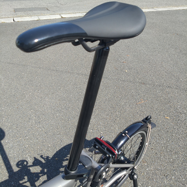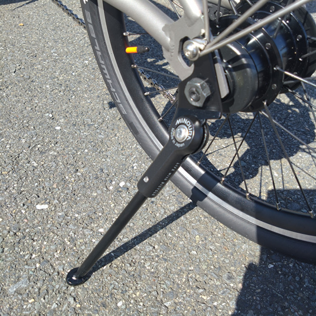 キックスタンドは12Sにも付けられる最新型。これで気軽に駐輪、折りたたみの邪魔にもなりません。