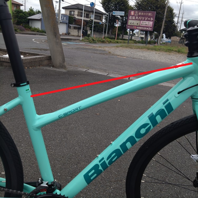 (写真の赤線が通常サイズのトップチューブ位置)