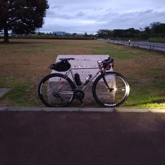 だいぶ日の出も遅くなってきました。今日の走行距離予定は260kmなのでライト充電用にモバイルバッテリーも持参。