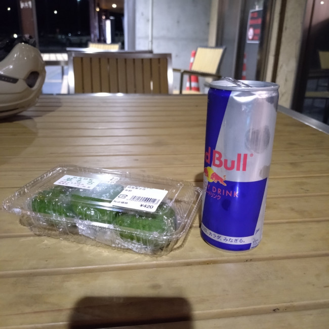 最後の補給で草餅とエナジードリンク