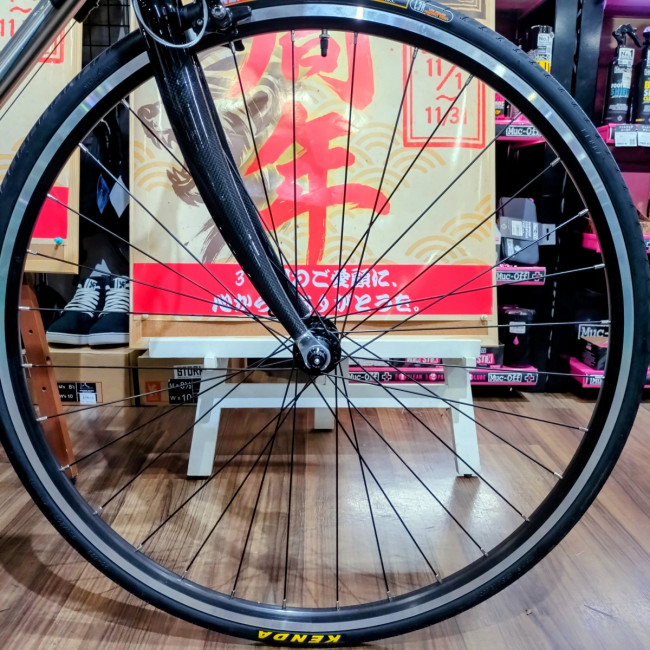 コンポはユーザーのステップアップで変更できるので、SHIMANO SORAをメインコンポの控えめな設定とし、長い距離を楽に走る視点からハブを含めた足回りに注目し、25cタイヤの採用、より快適なハンドルなどのパーツ構成、この価格帯では珍しくホイールのハブにはシールドベアリングを採用しており回転も非常に滑らかです。
