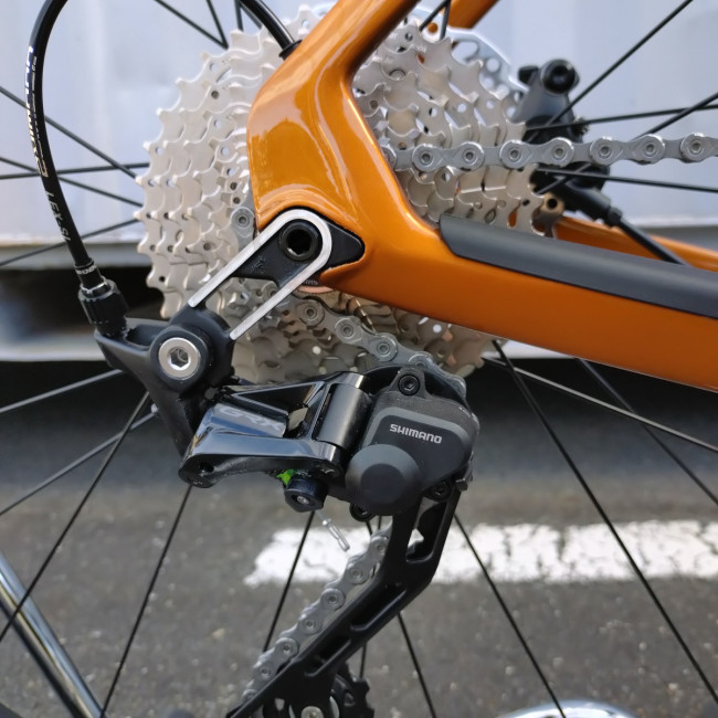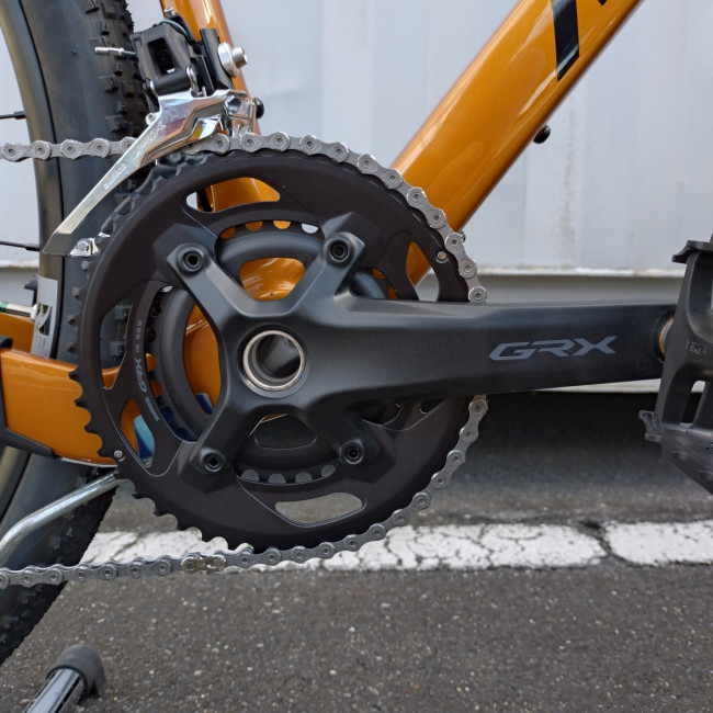 メインコンポはシマノGRX400ですがクランクセットをGRX600にする事でギア比をワイド化しています。