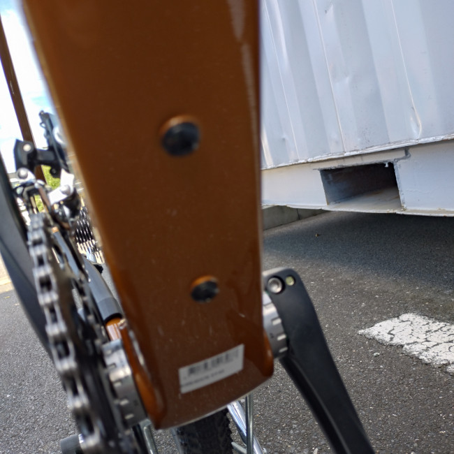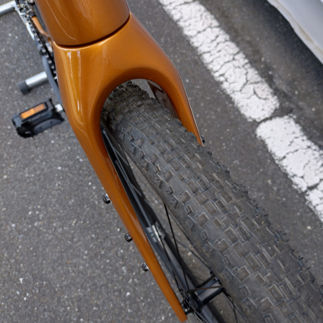 タイヤクリアランスも広くなり最大45cまで対応しており、フォークもサスペンションフォークに換装する事も可能です。