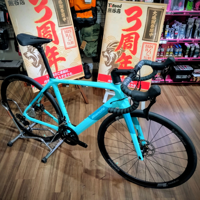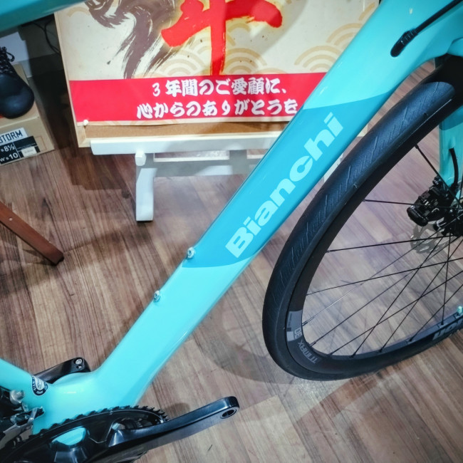 今では貴重なBIANCHI独自の振動吸収システム『カウンターヴェイル』搭載の『INFINITO CV DISC 105』の在庫がございます。