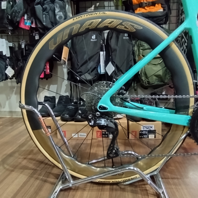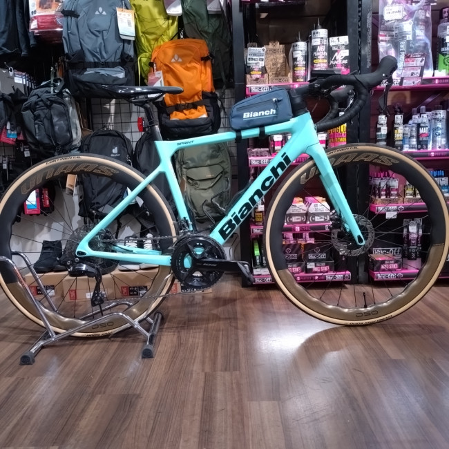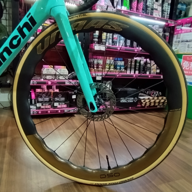 今回は購入後1ヶ月経ちましたので初期点検で御来店いただきましたが、既にタイヤが【コンチネンタル GP5000】交換してあり、話を聞くと、ご自身で交換してみたそうです(とてもアクティブなお客様)