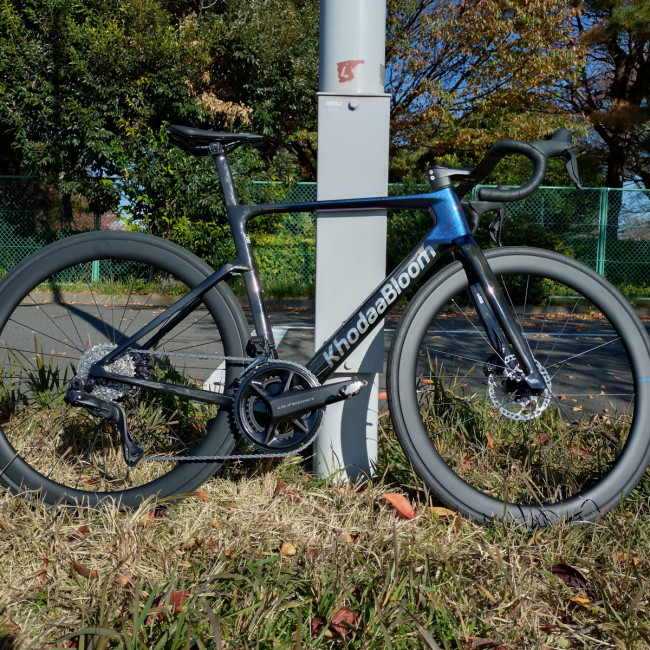 コンポーネントは『ULTEGRA R8100 Di2』ホイールは『SHIMANO WH-RS710-C46-TL』ハンドルは『P&P COMPONENTS KISSAKI』一体型カーボンハンドルがアッセンブリされています。