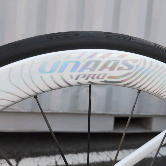 今回の試乗車はホイール『UNAAS PRO 50D』に変更してあります。