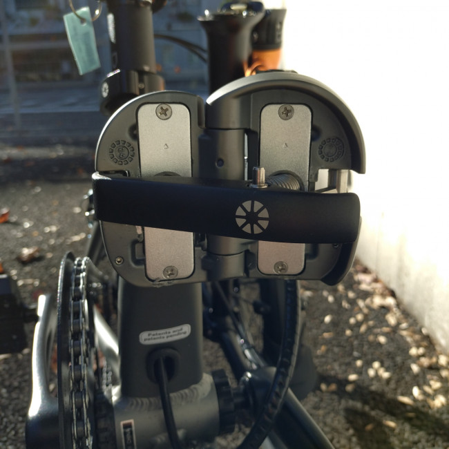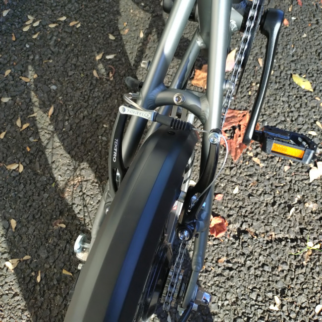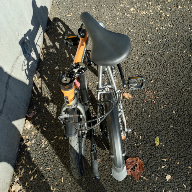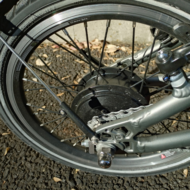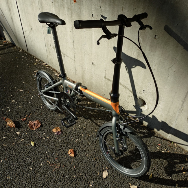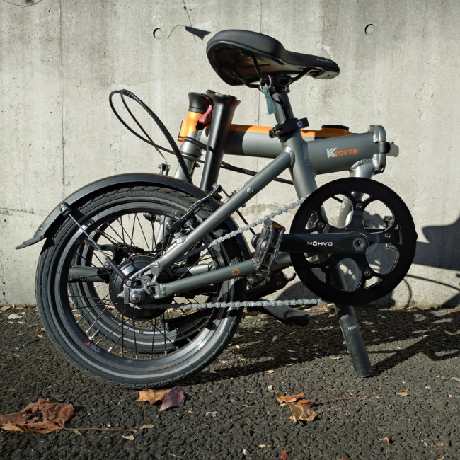 アシストモードが1つなのでどんな加速をするのか興味津々でしたが、普通にスムーズに加速して行き車重が軽いので十分パワーを感じます。坂道とかで息切れするようなことは無さそうです。乗り味は『K9X』そのもの。ホイールベースも長く太めのタイヤなのでフラつきにくく、初めての折りたたみスポーツ自転車の人でも安心て乗っていただけます。