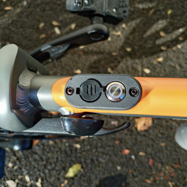 アシストモードは1段階アシストと非常にシンプル。電源ボタンを押すだけでアシストのON/OFFを切り替えます。走行可能距離はフル充電で30kmほどと短めですが、折りたたみ自転車で走る距離としては必要十分だと思います。