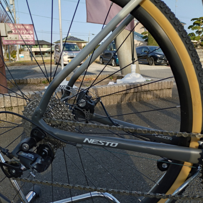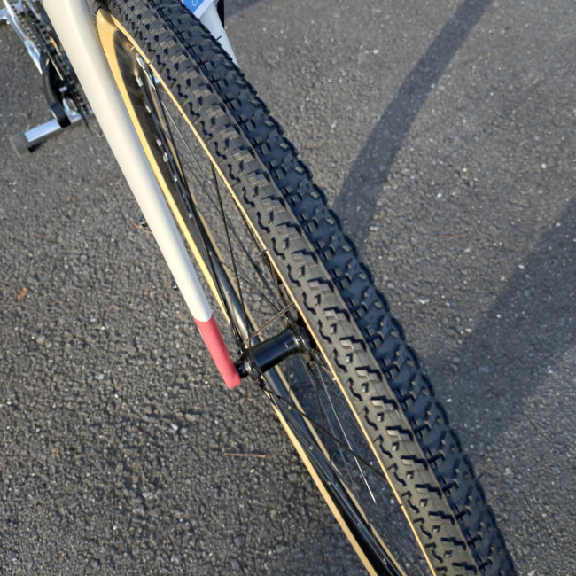 初期タイヤは『CST C1894 700x38C』グラベルロードとしては細め。よりグラベルメインで走るなら太めのタイヤにするのもアリです。