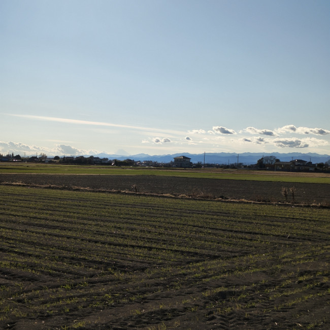 行田市内の田んぼから富士山がシルエットで