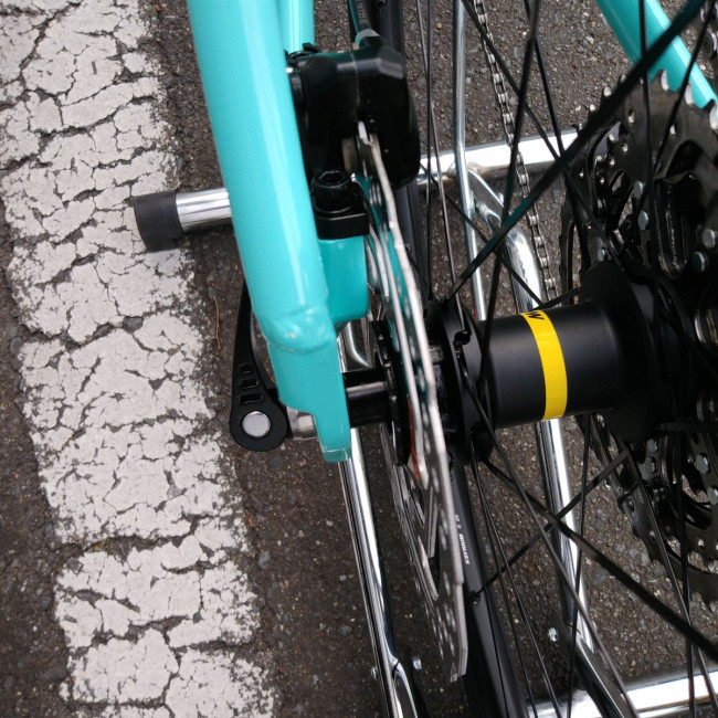 『KSYRIUM S』はロード用ホイールなのでリアエンド幅がクロスバイクと違います。