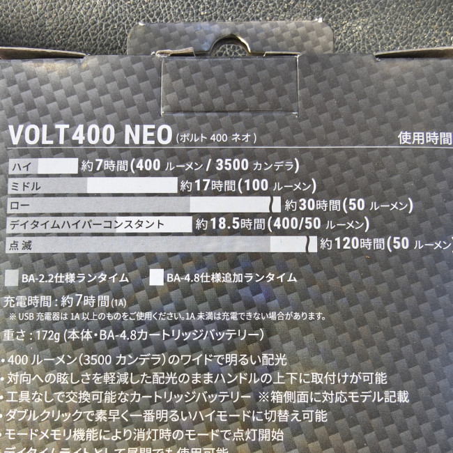 通常の『VOLT400 NEO』をお持ちの方もバッテリーが別売りしてますので交換すれば点灯可能時間を増やせます。