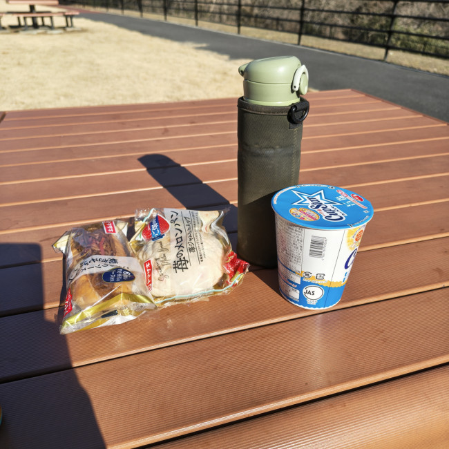 本格的なアウトドア用品は持ってないので、とりあえずサーモスの水筒にお湯入れて持ってくる