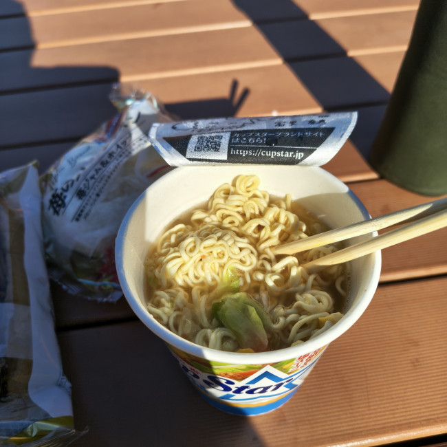 ただ、この日は風が強いので容器から麺をすくい上げると風により一瞬で冷やされます(笑)