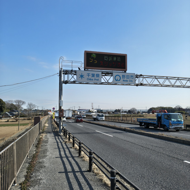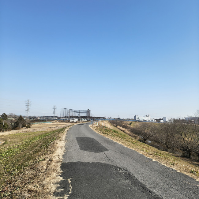 ここから『江戸川サイクリングロード』を南下しますが、江戸川右岸は令和10年まで『野田橋』付近で堤防工事をしているので手前の国道16号『金野井橋』を渡り左岸に移動。