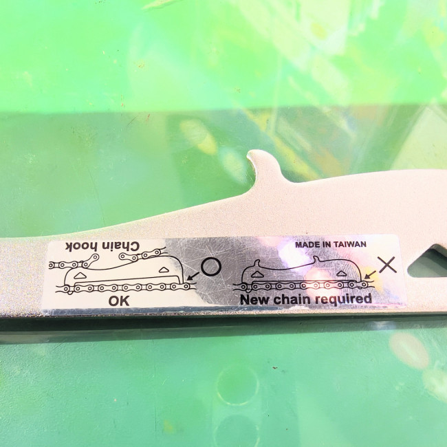 一般的にKMCチェーンは耐久性が高いと言われてますがチェーンチェッカーで摩耗具合をチェックすると、まだまだ問題なさそうです。