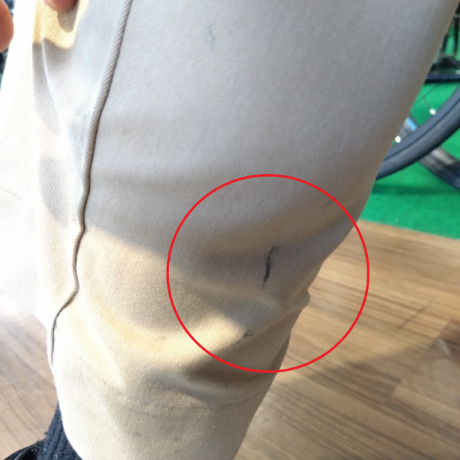 洗っても落ちにくいチェーンのオイル汚れがズボンに付く、最悪チェーンに裾を挟むトラブルです。