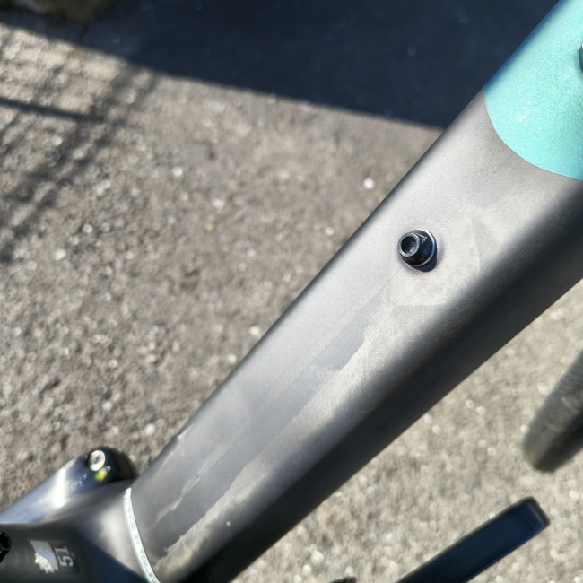 フレームの一部がヌードカーボンになっており1台ごとに異なる趣も。