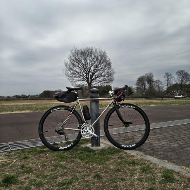60kmほど走り下妻市の『ホーミックふれあい公園』でお昼休憩。ここまで体調を考慮して『とにかく踏まない』事を意識して走ってきたので疲労感は無いのですが体調はやっぱりイマイチ。
