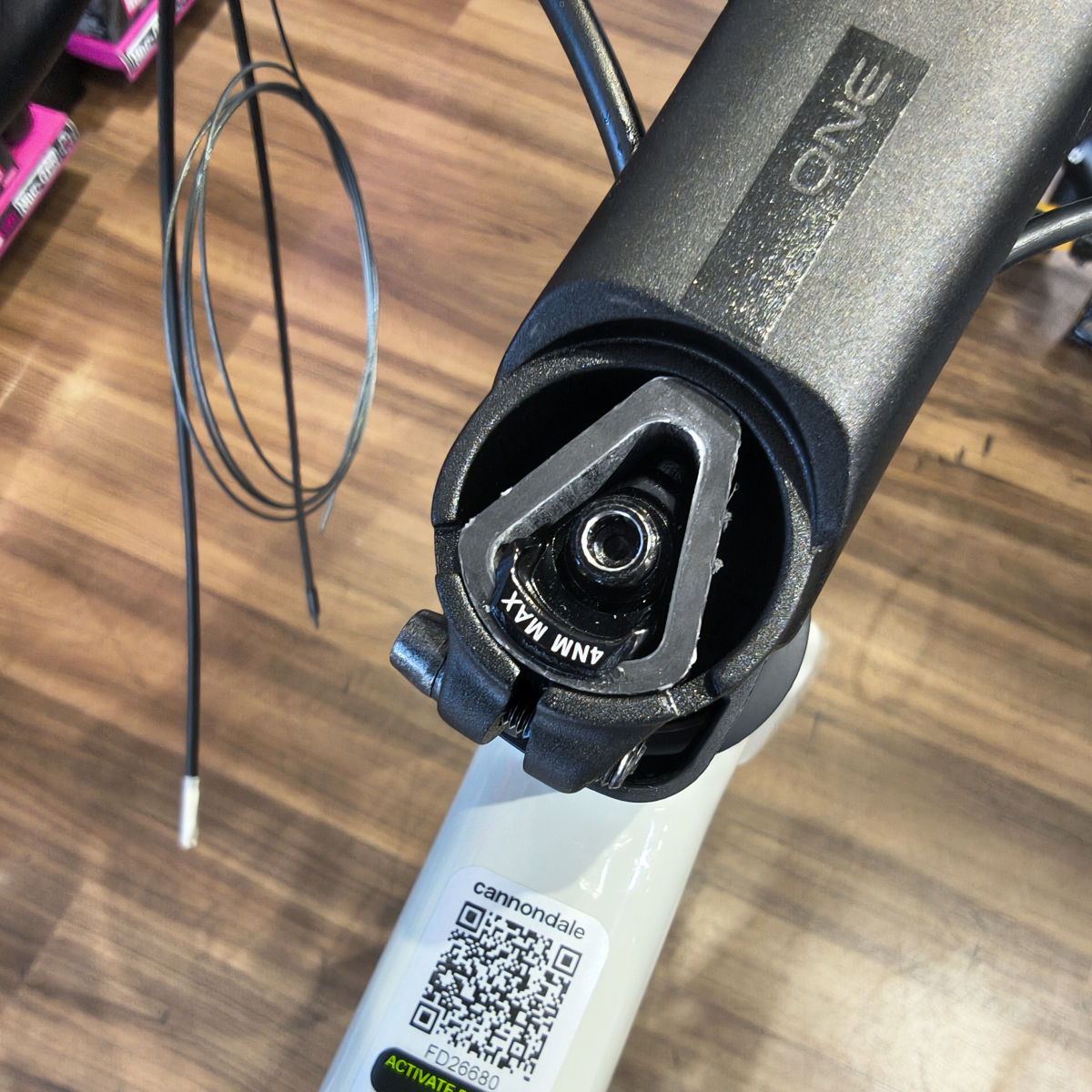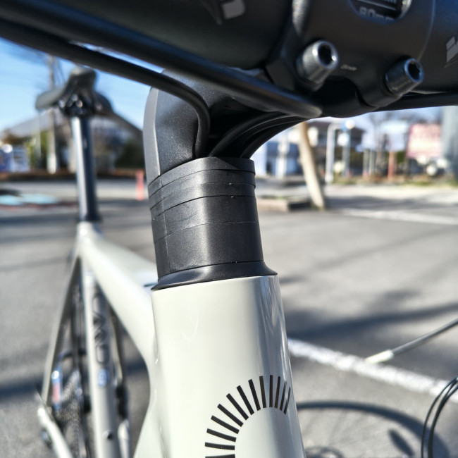 コラムはデルタコラムに変更しましたがステムは汎用性のある丸形ステムなのでポジション調整もしやすくなってます。さらにsuper sixシリーズの上位モデルで採用されている一体型ハンドルとも互換性があるのでこちらへの換装も可能です。