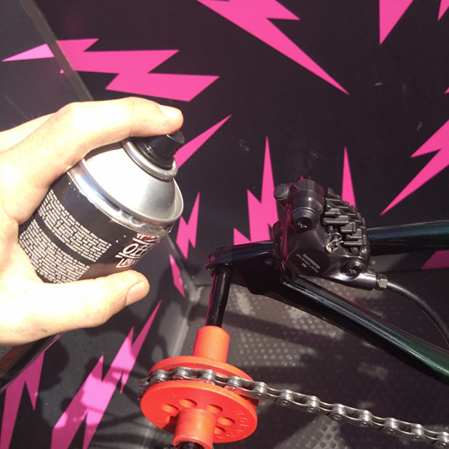 先ずはローターとパッドに直接吹きかけます。