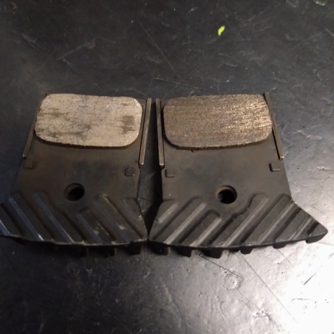 (右側が汚れたブレーキパッド)