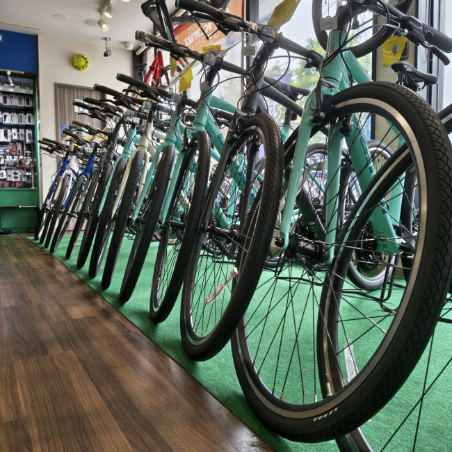 『C SPORT』シリーズの大きな特徴は「最適化したフレーム形状」「気軽な乗車姿勢と安定したハンドリング」「平坦路から登りもこなすギアを搭載」で、様々な用途や環境に対応するバイクになります。また、タイヤサイズ(幅)が38mmあるので、路面状況や初めてのスポーツバイクでも安心して走ることができます。