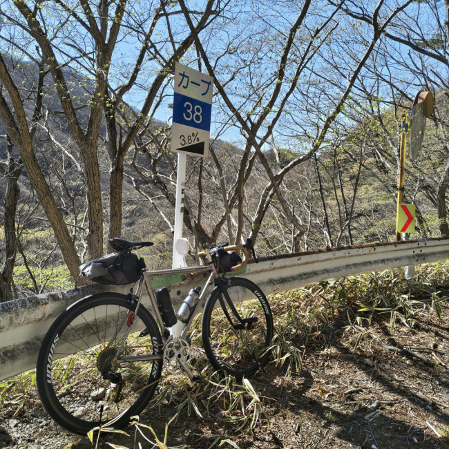 中盤の九十九折り区間は階段式の上りになっており、緩くなったりキツくなったりの繰り返しです。