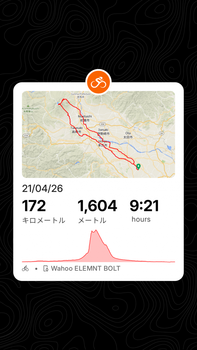 本日の走行距離170km