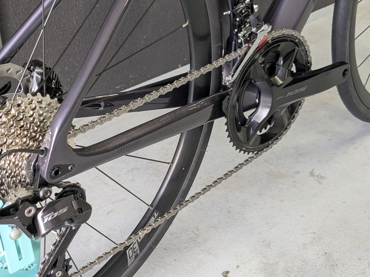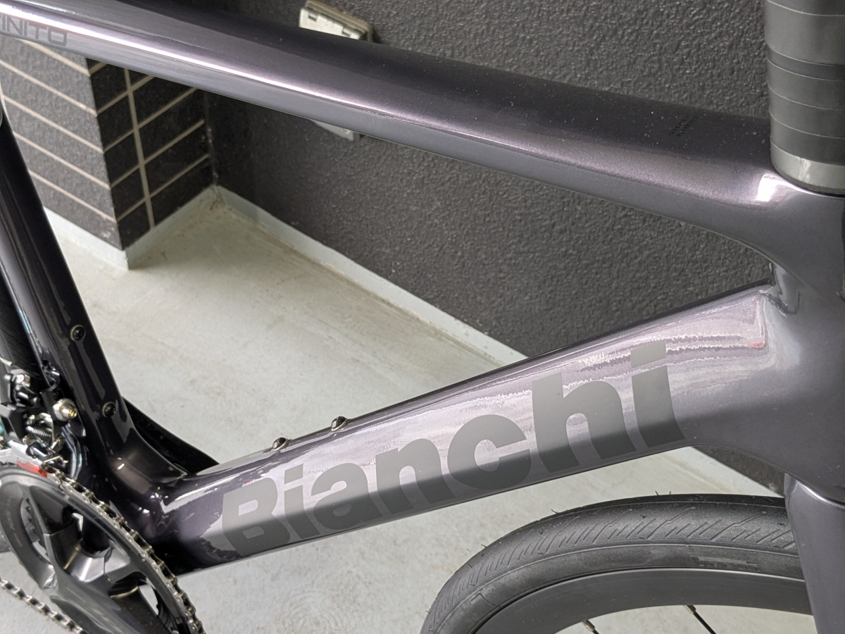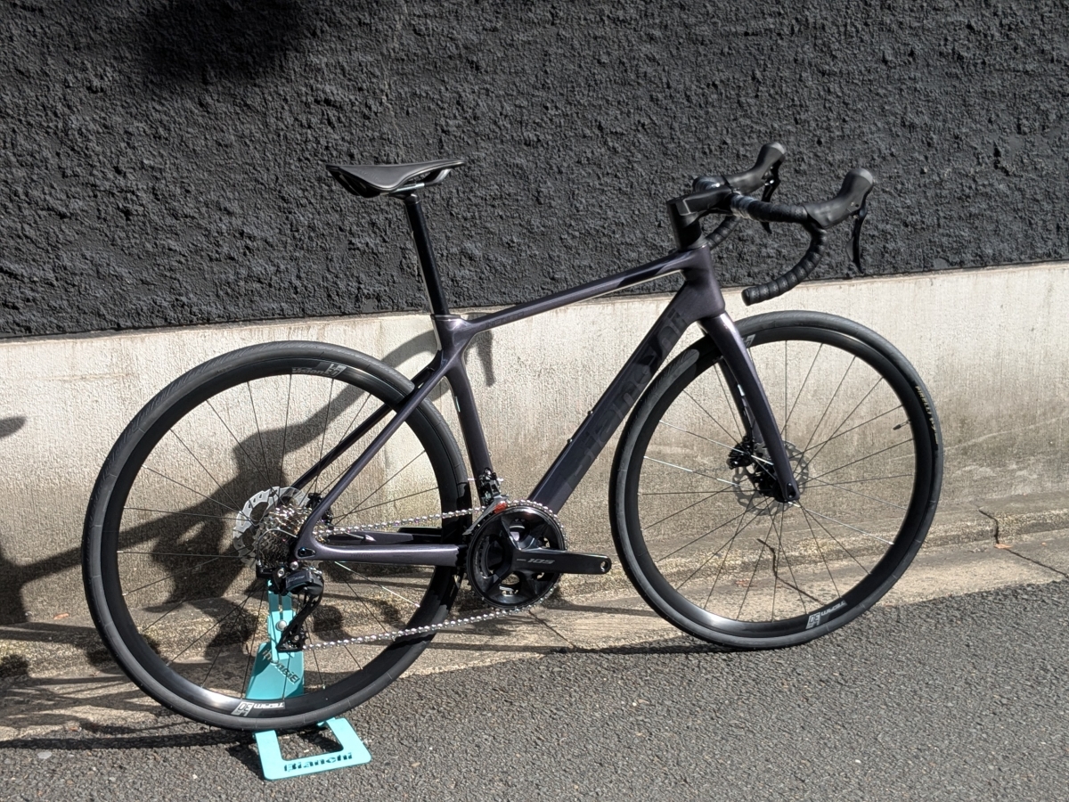 今回はビアンキ不動の人気カラーであるチェレステカラーが入荷予定ですが、現在(2/18)京都店にはもう一つのカラーであるパープルブラックの車体(サイズ:46)も在庫しております。