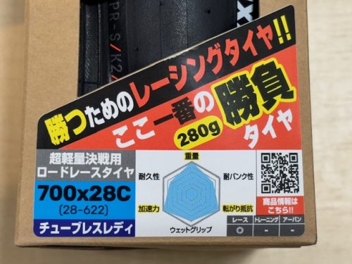 チューブレスレディのタイヤの中でもかなり軽量で、乗った印象もスピードも上げやすく、不安な挙動は皆無です。