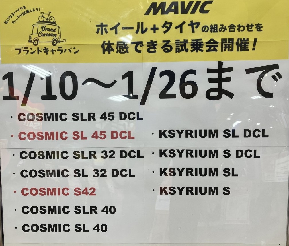 ホールの試乗体験ができるMAVICホイールブランドキャラバンものこり25(土)26(日)の二日のみとなりました。ホイールのアップグレードにご興味がある方は購入前のお試しとしてぜひご活用ください。