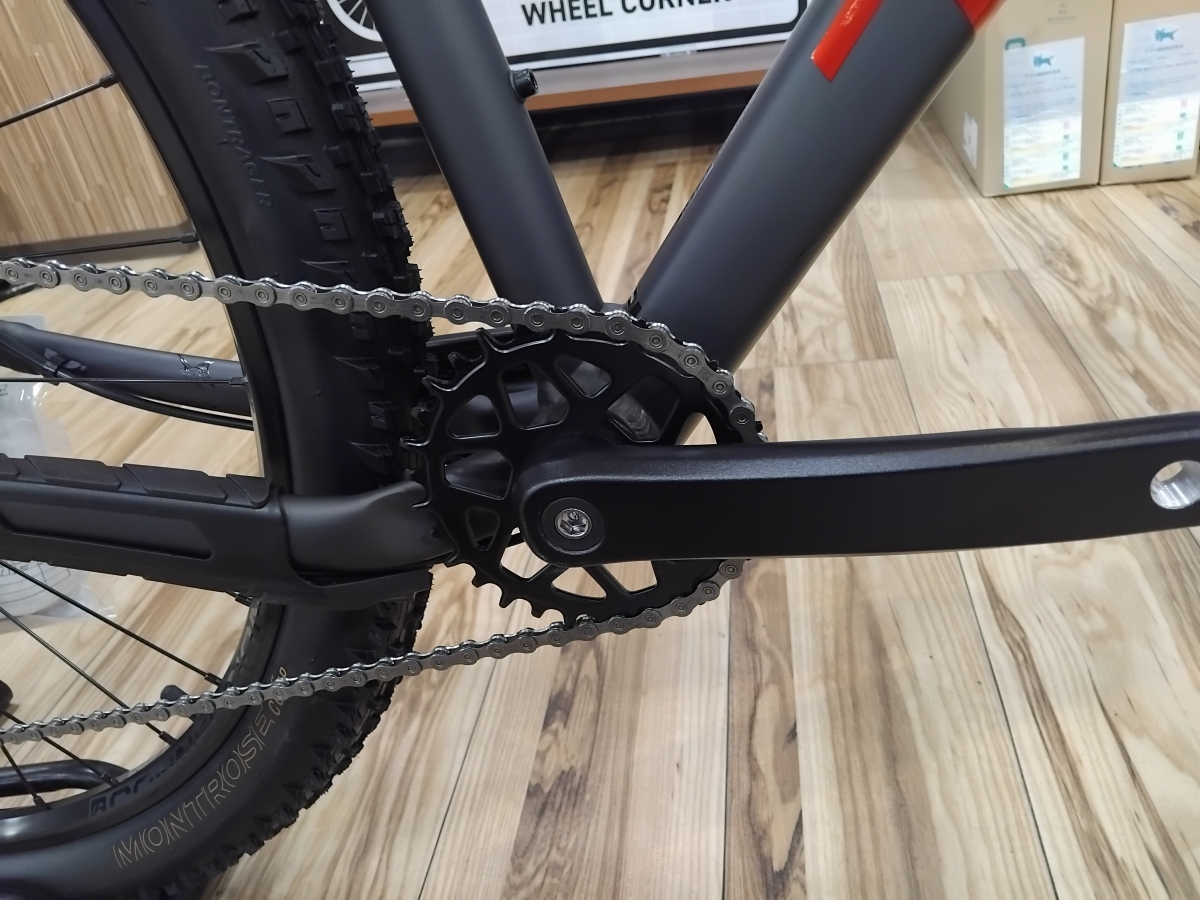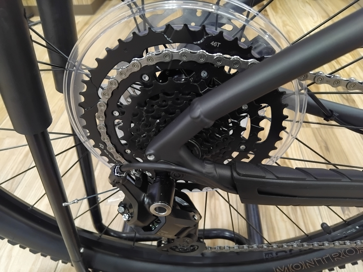 フロントシングルの9速仕様。ワイドなスプロケになってますので幅広いシーンに対応できます。
