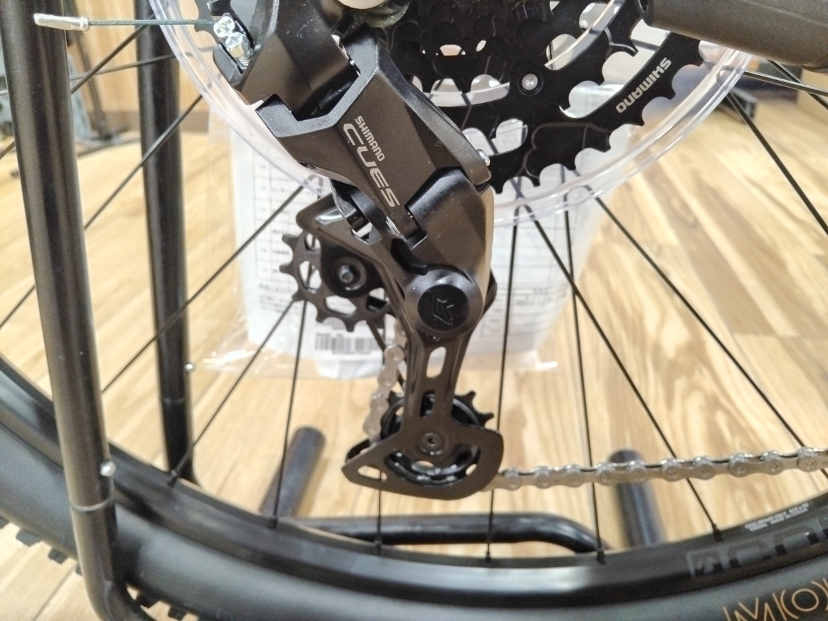 SIMANOの新型コンポ「CUES」を搭載。摩耗しやすいパーツの寿命が大幅に向上しています。
