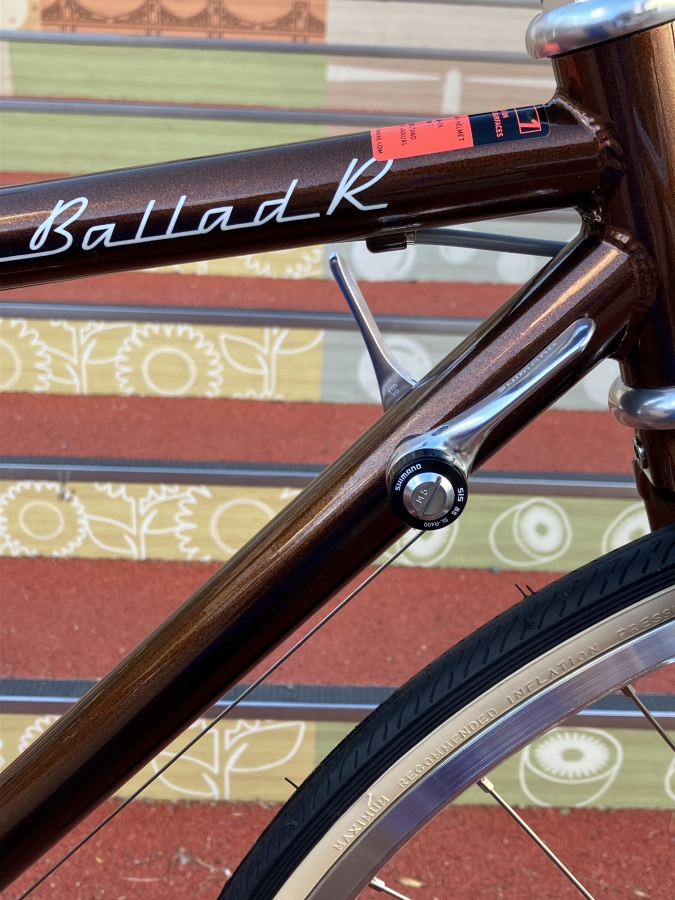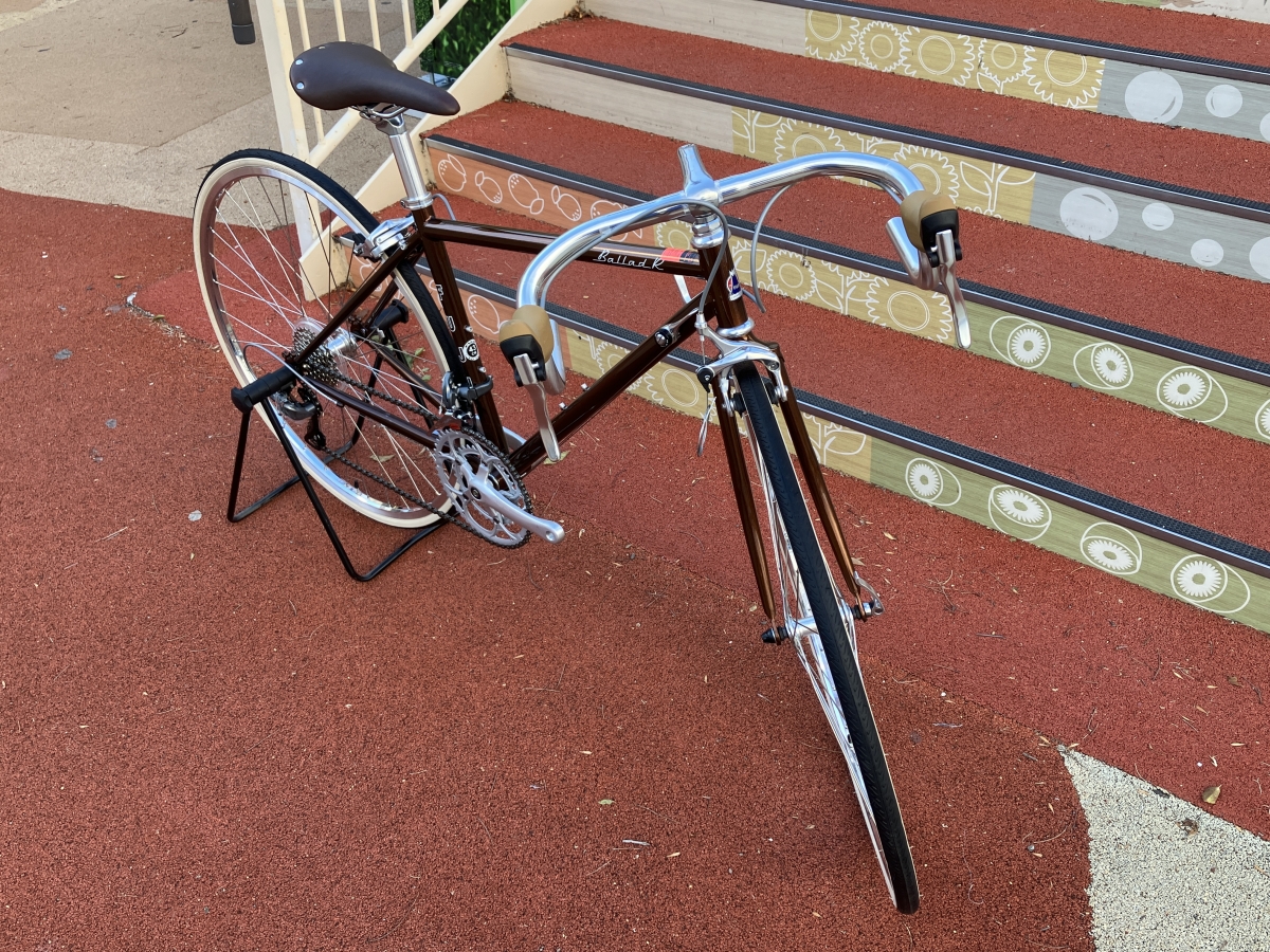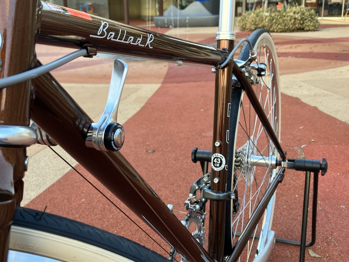 大きくカーブしたハンドルや細身のクロモリパイプを使用したBALLAD R。FUJIのアーバンクロモリバイクの中でもスタンダードな古き良きクロモリバイクといった雰囲気のモデルになります。