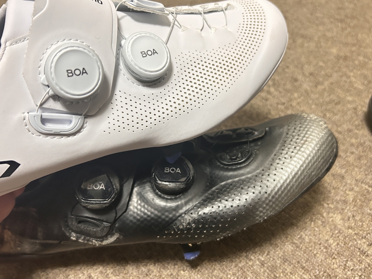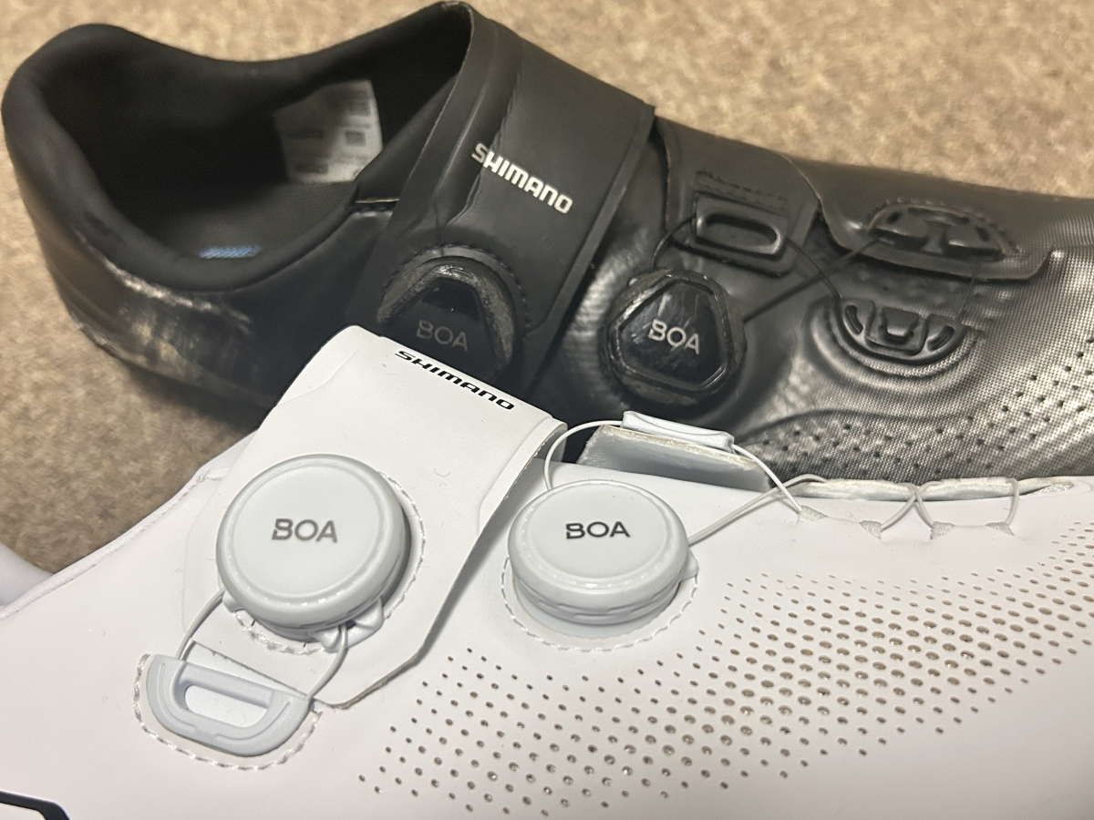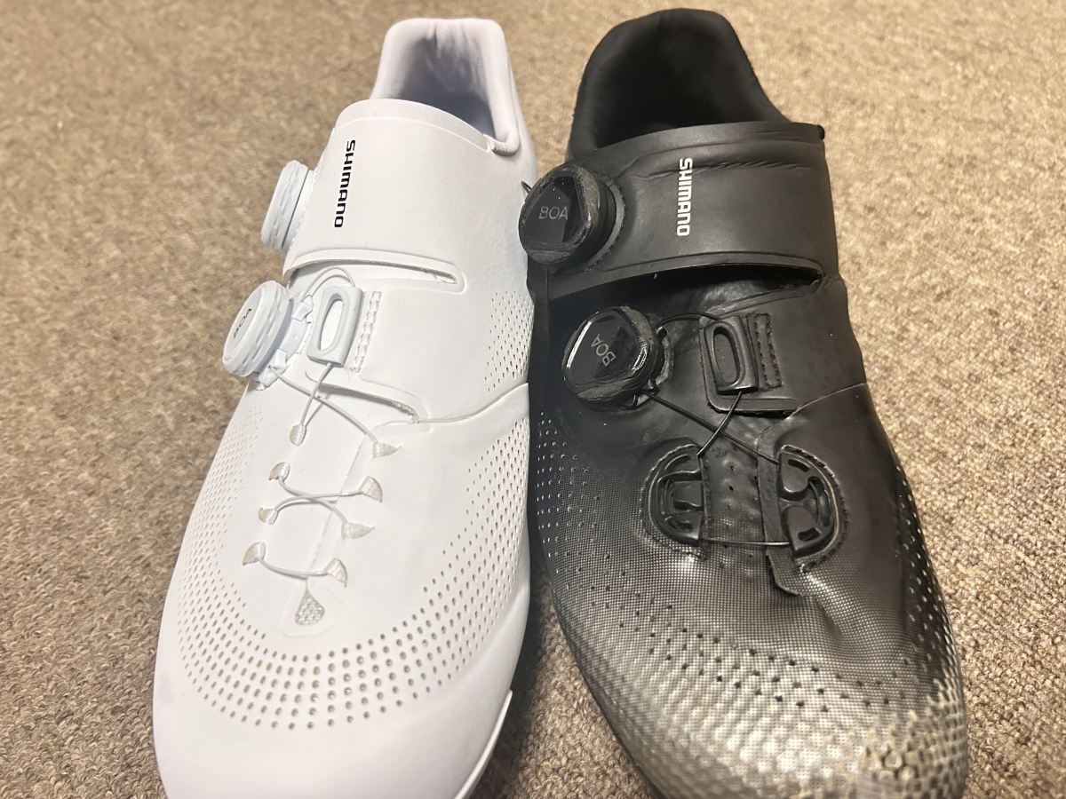 今までのシューズはブラックだったのですが、バーテープやボトルケージが白だからシューズでも合わせてみました。