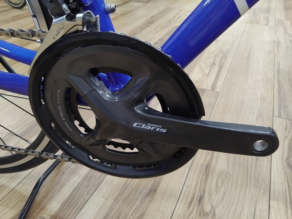 変速はリア8段、フロント2段の16段変速。サイクリングや通勤通学には必要十分なスペックです。私も長い事16段変速のギアで通勤していましたが、何の問題もありません。ヒルクライムやトライアスロンなどのレースにもでてました。レース等では物足りない感はありましたが。。。レースの空気感を味わうことはできます。