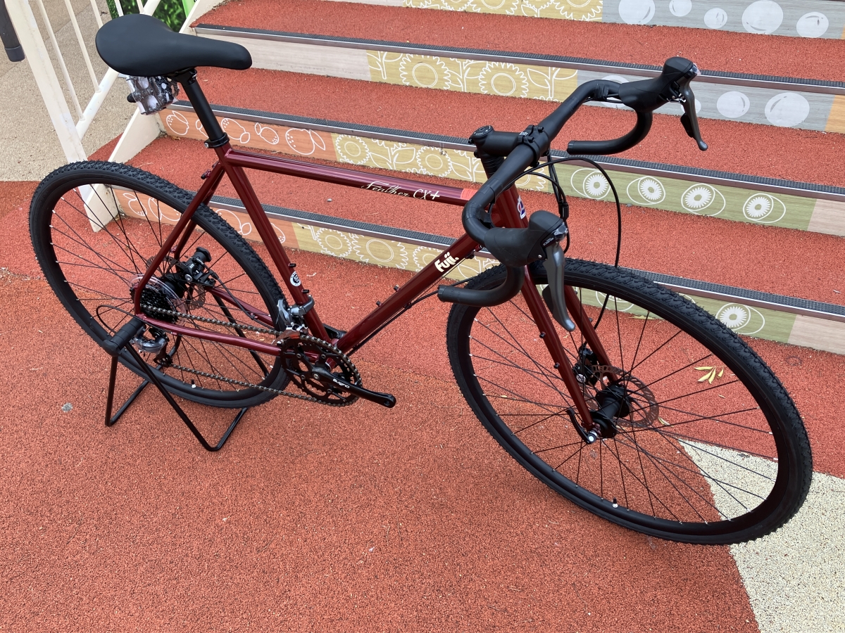 FEATHER CX+は渋めのカラーが揃っていますが今回入荷分は赤とも茶色とも違うマルーンカラー!トップチューブにはFEATHER CX+のロゴ入り。
