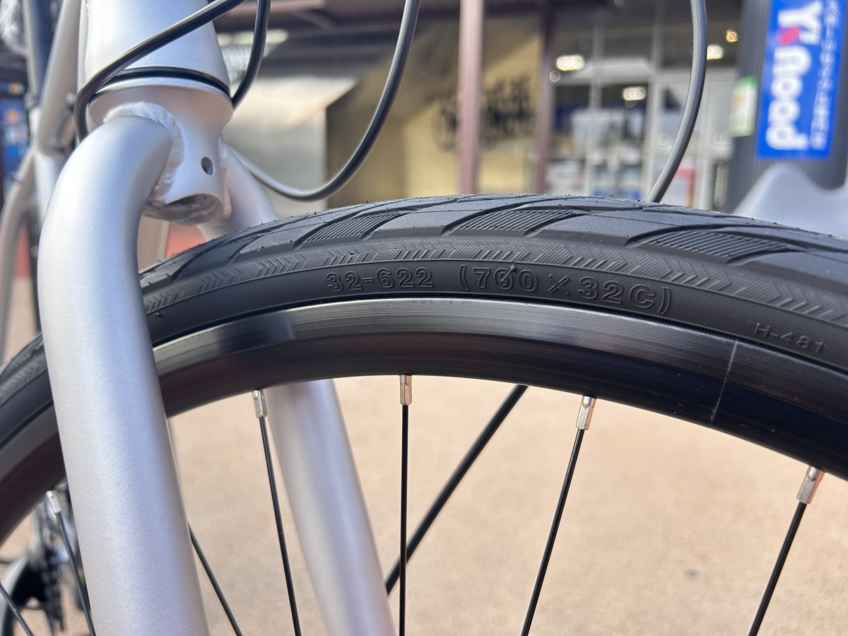 タイヤは700×32cとクロスバイクでは標準な太さです。