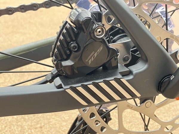 R7100系12速、電動コンポ搭載。ボタンを押すだけで変速がミスなく完了する電動変速はロングライドで疲れた後半こそ恩恵を感じられる一品です。